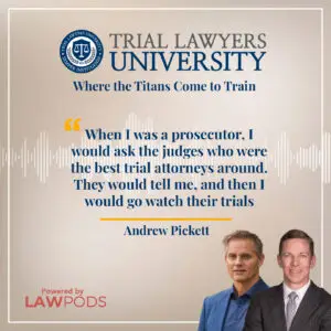 Clients come to trial lawyers for calm judgment and dependable results when a case matters most. In a recent podcast appearance, Andrew Pickett described how those outcomes are built, not from tricks, but from a consistent approach to craft. He put it plainly: “There is a trend, especially among younger lawyers, of wanting to share information and being transparent with how they do things so they can make other people better.” That sentence captures his core point: transparency is not vanity, it is a practical way to surface the thinking behind courtroom choices so teams and clients benefit.